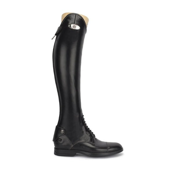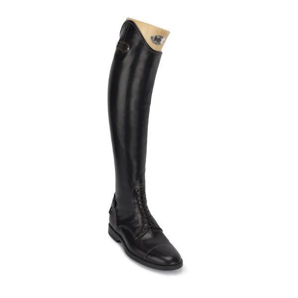 Alberto Fasciani's Leonardo is made in a soft calfskin leather. This is a peculiar showjumping boot that is extremely soft and comfortable. The inner part is in rubberised textile to fit smoothly any kind of leg. Equipped with back zip and elastic laces. The sole is with Blake stitch, latex rubber and anti-shock.