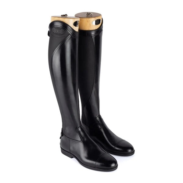 Loreto is a standard jumping boot, made of soft calfskin and a special rubber stretch textile that allows an excellent fit to different types of leg, ensuring up to 2 cm of elasticity.