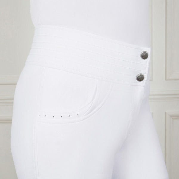 Luxuriously crafted from a breathable, quad stretch material which curves to your shape to create a smooth, flattering fit. The ribbed, high-rise waistband ensures you feel supported whilst riding, and also ensure unrivalled comfort at all times. These breeches also provide elite security in the saddle with the technical full seat silicone detailing.