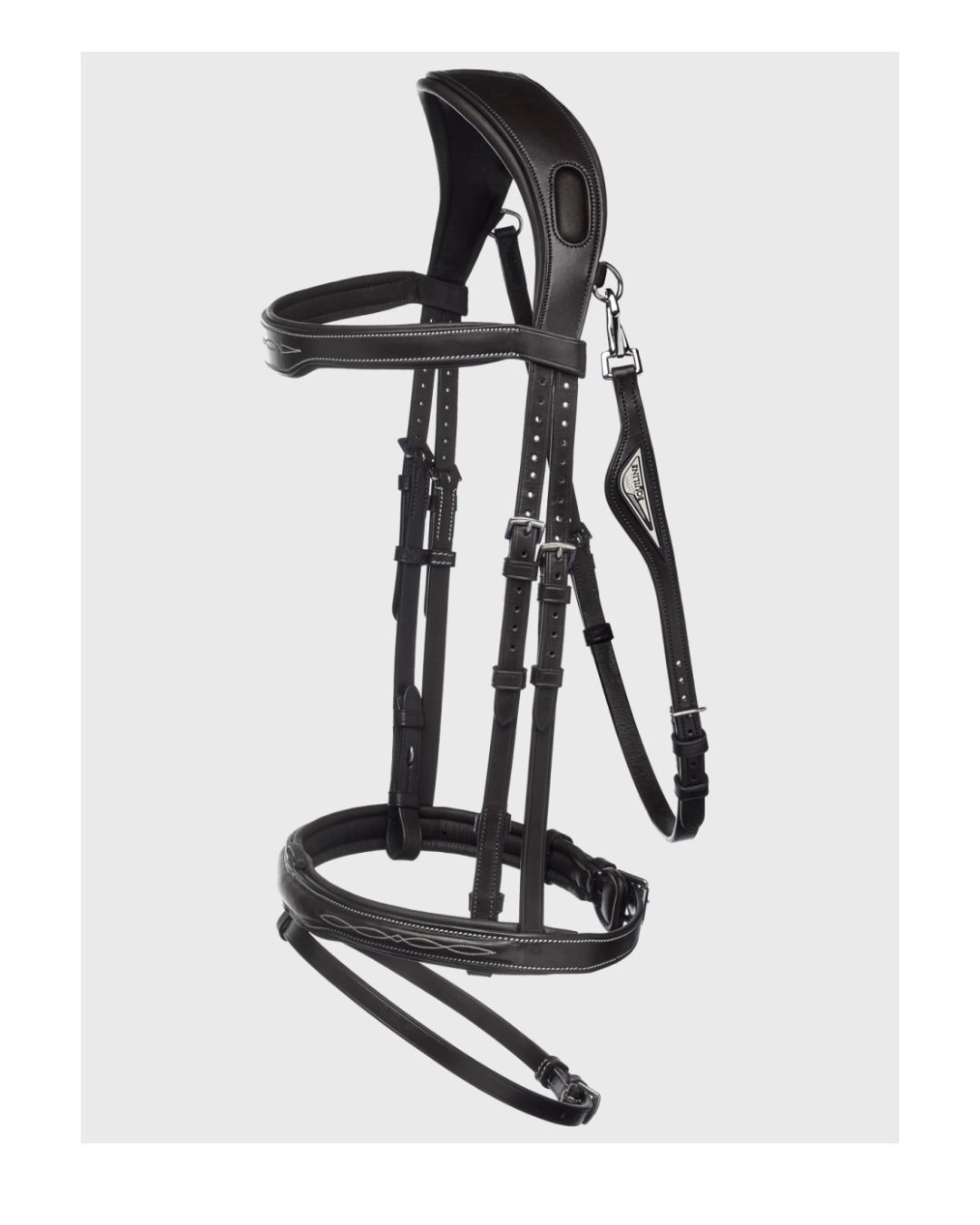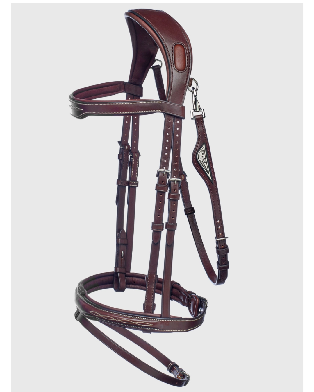 Elevate your pony's appearance with our meticulously designed bridle. The 5/8" Pony Equiline bridle features a padded headpiece, browband and French noseband. An Equiline embossed logo on the headpiece completes the model.