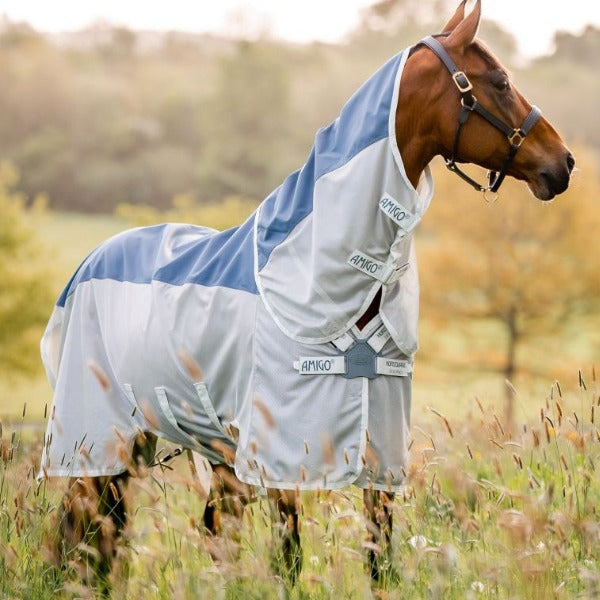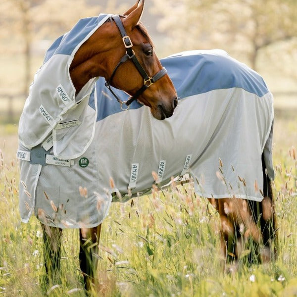 Other features we know you'll love on the Horseware® Amigo® AmECO Combi includes 100% UV protection on the top section, disc front closure to reduce weight and extended belly coverage with Velcro closures supported by three straight surcingles. Dual leg arches offer a greater range of movement, and a PVC wipe-clean tail cord extra-long waterproof tail flap helps to protect from summer showers. A detachable hood is included to give you flexible options.