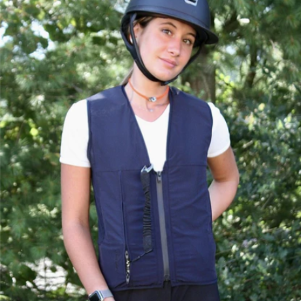 The SAFEFIT airbag vest explodes outward for extra comfort.